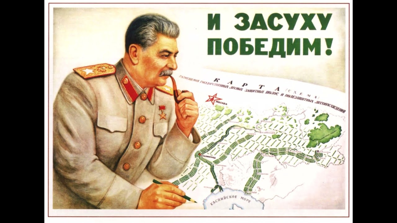 According to a Pravda report: “Shelter forest belts have already been planted on more than 800,000 hectares, 306,800 hectares in this spring alone. An irrigation system for 122,000 hectares has been completed, requiring the construction of 8,000 irrigation pools and water tanks. The tasks for this year include planting 700,000 hectares of forest and building 7,587 irrigation pools.” (Kommunisti, no. 6, 1950, p. 387). The Soviet Union also undertook numerous hydrological projects to conserve its prominent rivers.
